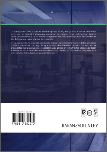 Este libro ofrece un análisis exhaustivo del régimen jurídico de los tributos en España, abarcando los sistemas estatal, autonómico y local. Destaca por incluir ejemplos y cuadros sinópticos que proporcionan claridad en la exposición, y en esta edición se incorporan las más recientes novedades legales. Está diseñado para ser una herramienta valiosa, ayudando en la resolución de problemas fiscales tanto a estudiantes como a profesionales del ámbito jurídico y fiscal.