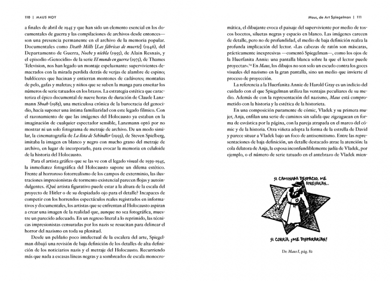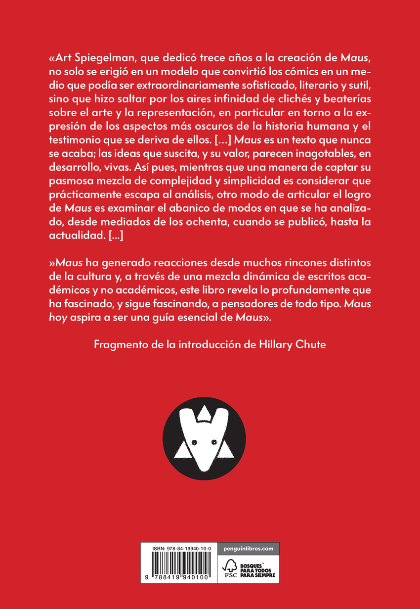 TRAS 40 AÑOS DE INNEGABLE INFLUENCIA, ESTA ANTOLOGÍA RECOJE 22 ENSAYOS QUE ANALIZAN UNA DE LAS NOVELAS GRÁFICAS MÁS ICÓNICAS DEL MUNDO: BIENVENIDOS AL UNIVERSO MAUS Ilustrado profusamente con imágenes del propio Maus («la obra narrativa más conmovedora y célebre jamás realizada sobre el Holocausto», The Wall Street Journal), Maus hoy presenta los documentos que veintiún críticos, autores y académicos prominentes -entre los que se incluyen Philip Pullman, Robert Storr, Ruth Franklin y Adam Gopnik- han escrito acerca del logro y la innovación radicales que supuso su publicación original hace más de cuarenta años, y que fue considerada por The New Yorker como «la primera obra maestra de la historia del cómic» Art Spiegelman, dibujante galardonado con el Premio Pulitzer, es uno de los creadores más destacados de la era contemporánea, y su influencia en la cultura estadounidense de posguerra es insoslayable. Pese a haberse enfrentado a numerosos intentos de censura, Maus ha transformado los campos humanísticos de la literatura, la historia y el arte y, asimismo, ha reavivado las posibilidades de expresión colectivas. Maus hoy. Una selección de textos reúne observaciones diversas sobre la obra monumental de Spiegelman, que confirman su carácter único y revolucionario. En las casi cuatro décadas que separan 1985 de 2020, los autores han abordado Maus desde una amplia gama de perspectivas y tradiciones. Por ello, el libro está organizado en tres secciones («Contextos», «Problemas de representación» y «Legado»), con un orden no estrictamente cronológico, y ofrece por primera vez traducciones de importantes ensayos sobre Maus escritos originalmente en francés, hebreo y alemán. Maus es una obra que, a su vez, es capaz de revelar y generar más ideas, y lo hace además de un modo profundo e imperecedero. Con esta recopilación, la investigadora literaria estadounidense Hillary Chute, experta en cómics y narrativas gráficas, nos presenta los mejores textos, seleccionados de todos los rincones del mundo, que versan sobre un libro que ya es un clásico de la memoria histórica dibujada.